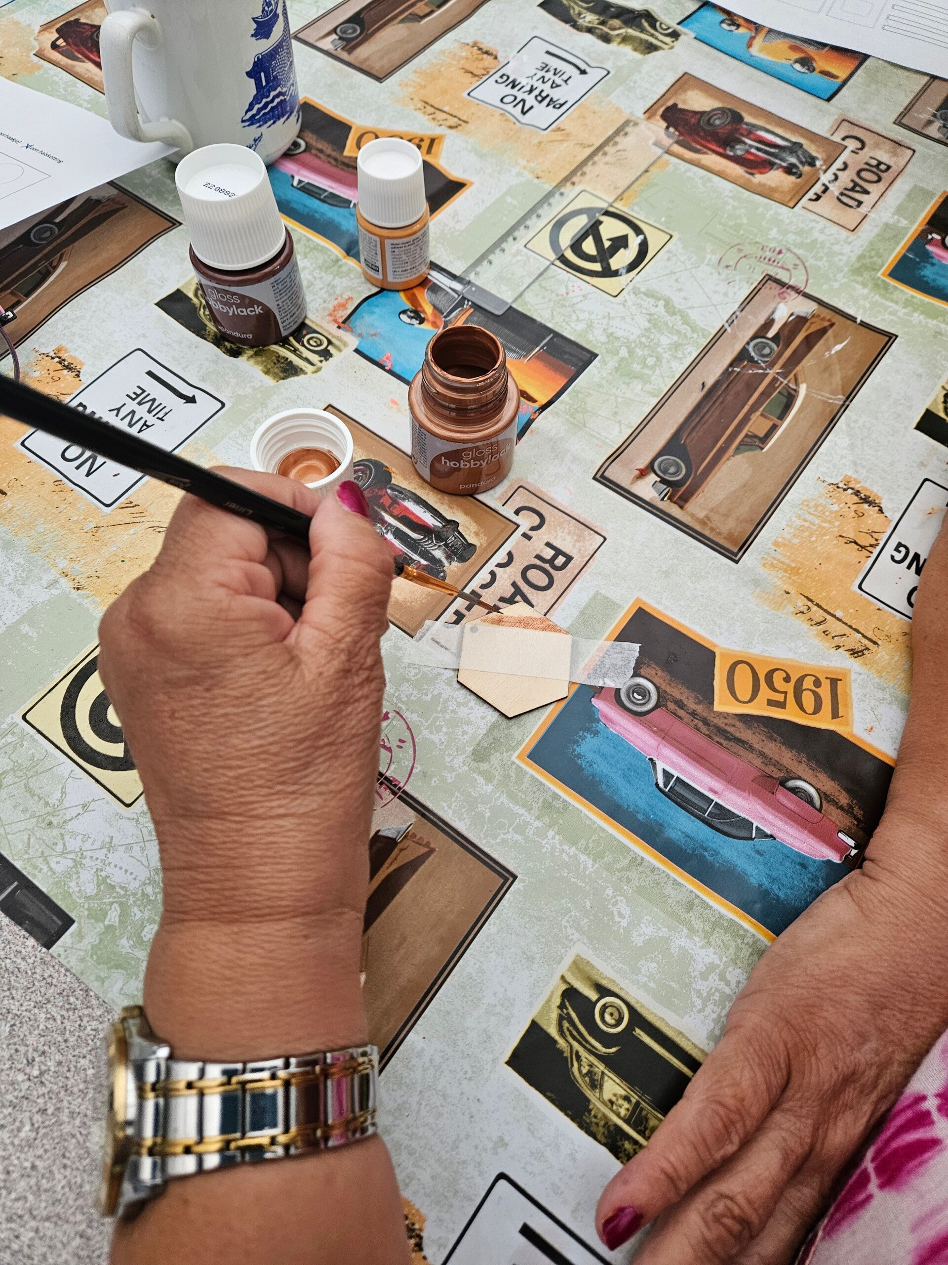 - beschilderen van houten juwelen met acrylverf (minimalistische stijl)