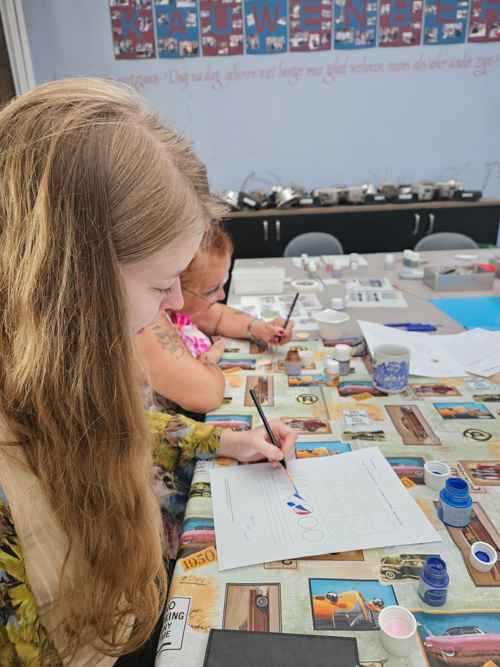 Als organisator zorg je voor voldoende tafels, bescherming van de tafels, keukenrol, bekers met water (voor de penselen), gootsteen om materiaal te reinigen, kopies van de recepten/infobundel voor de deelnemers.