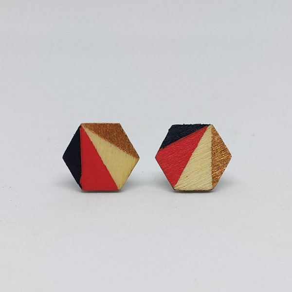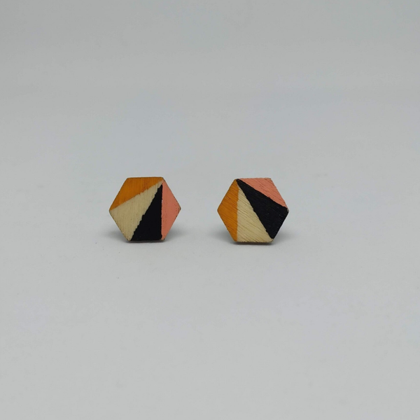 Houten oorstekers, hexagon (groot, dun) , model OG/A/HGDU-H (niet-gegraveerd)