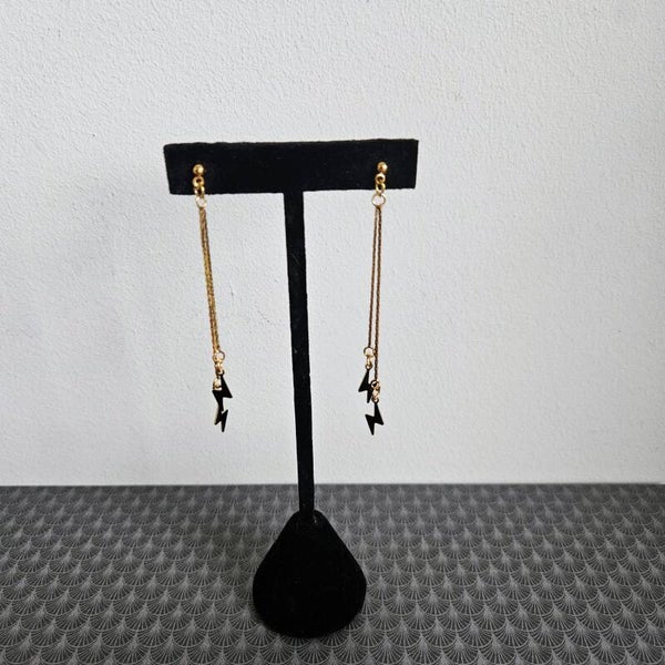 oorhangers JESSY 2 kettingetjes met 2 bliksems (email, messing, goud) (oorknopjes lood- en nikkelvrij)