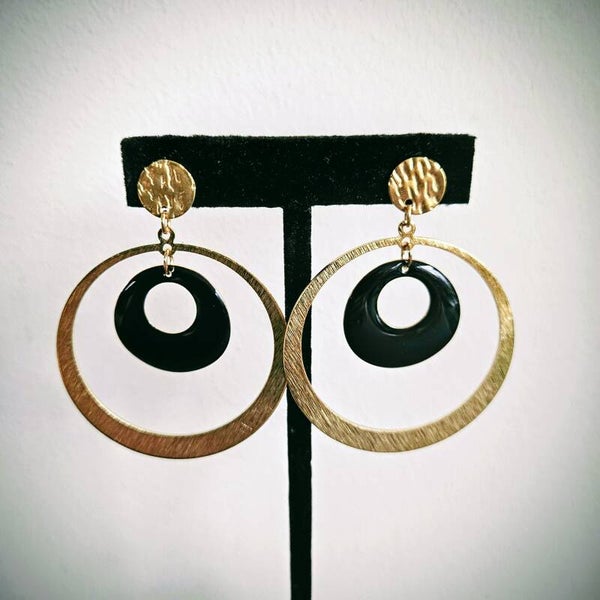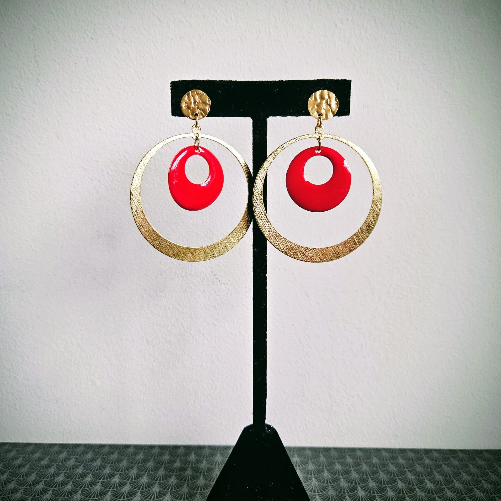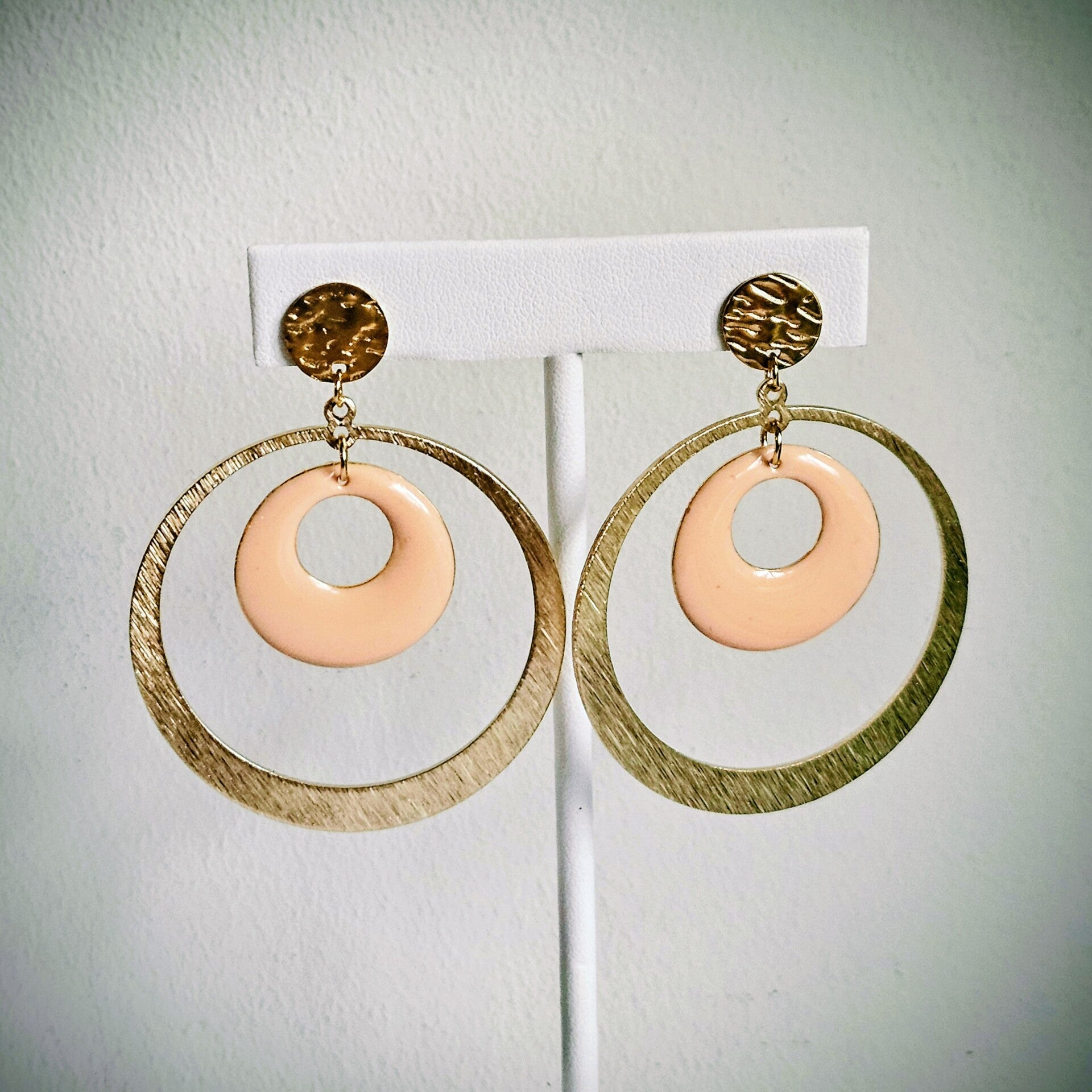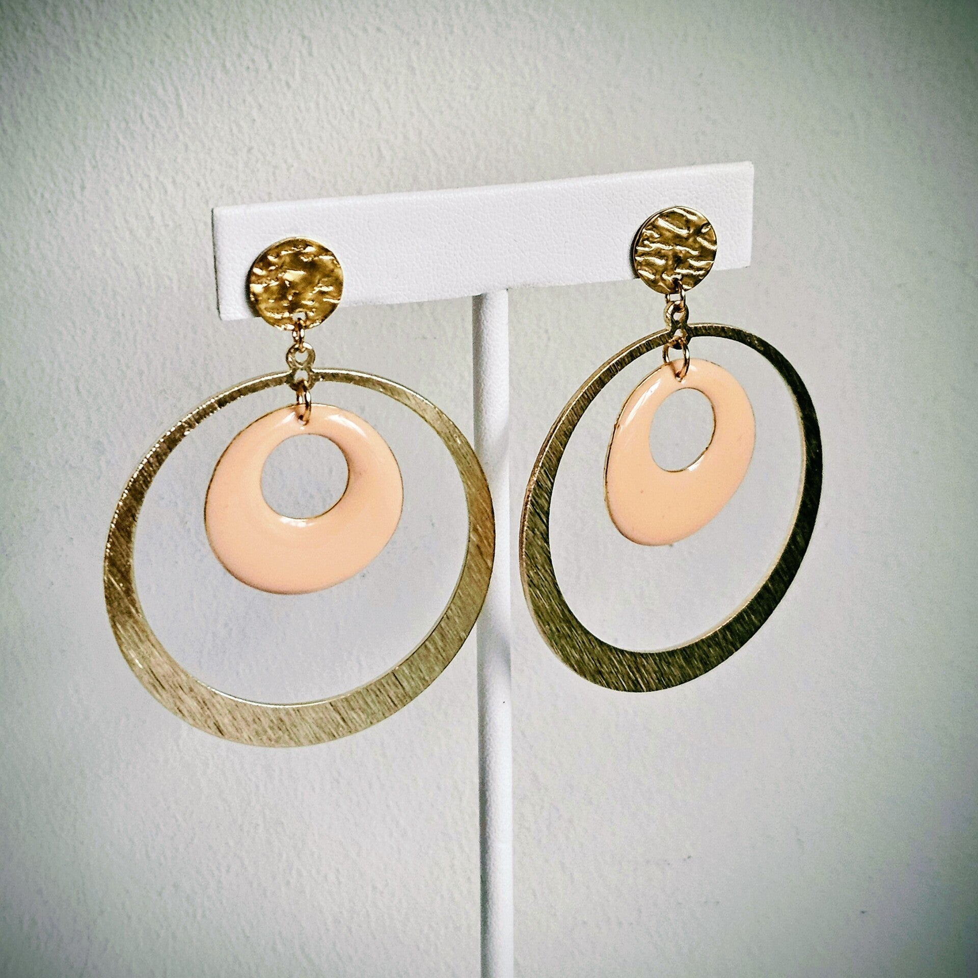 XL statement ronde oorhangers met getextureerde ronde studs in RVS (email, messing, goud)