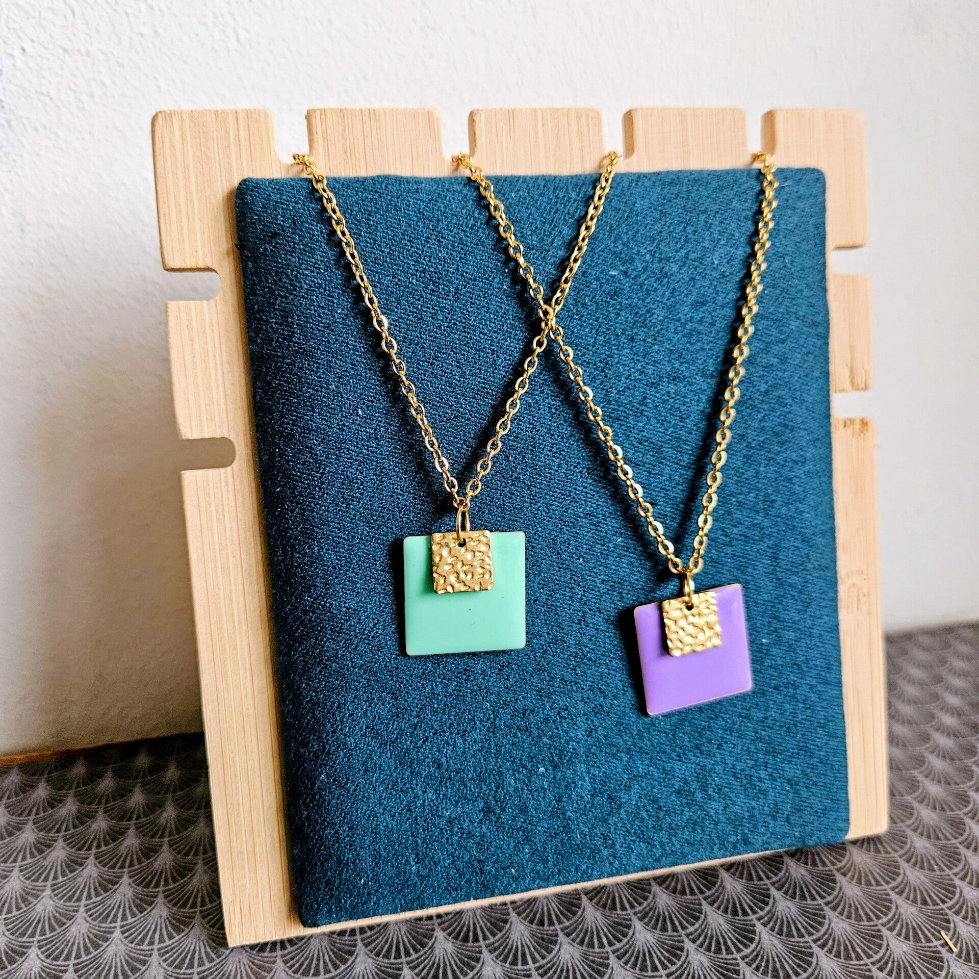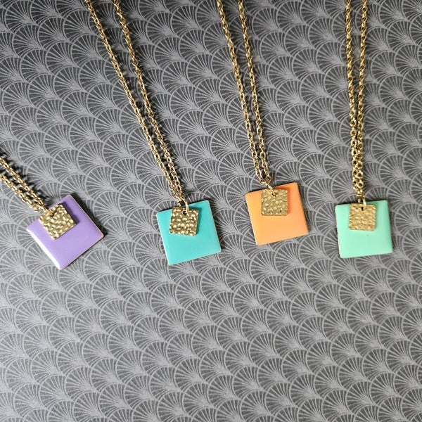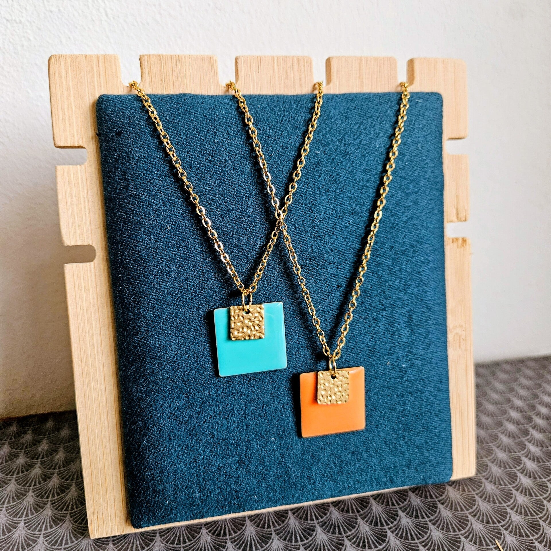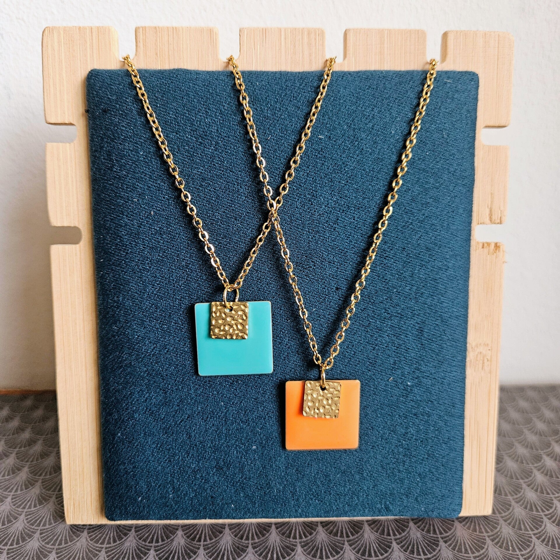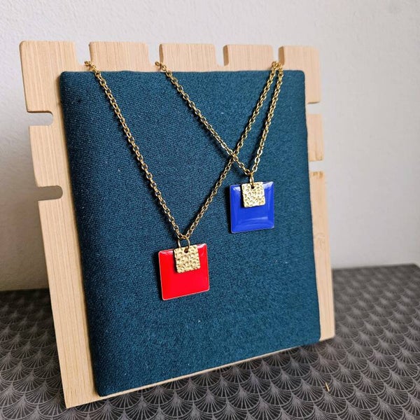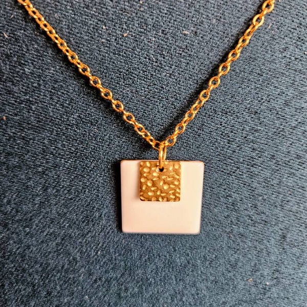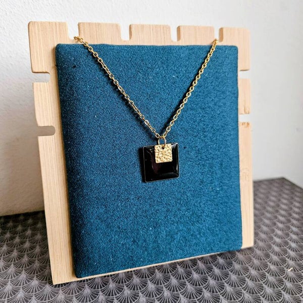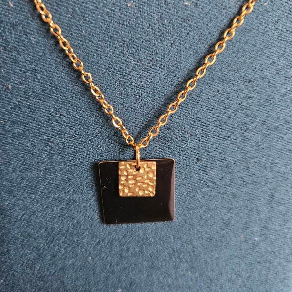 halsketting GODELIEVE (RVS) art nouveau model 2 vierkant (emaille, goud) 45cm