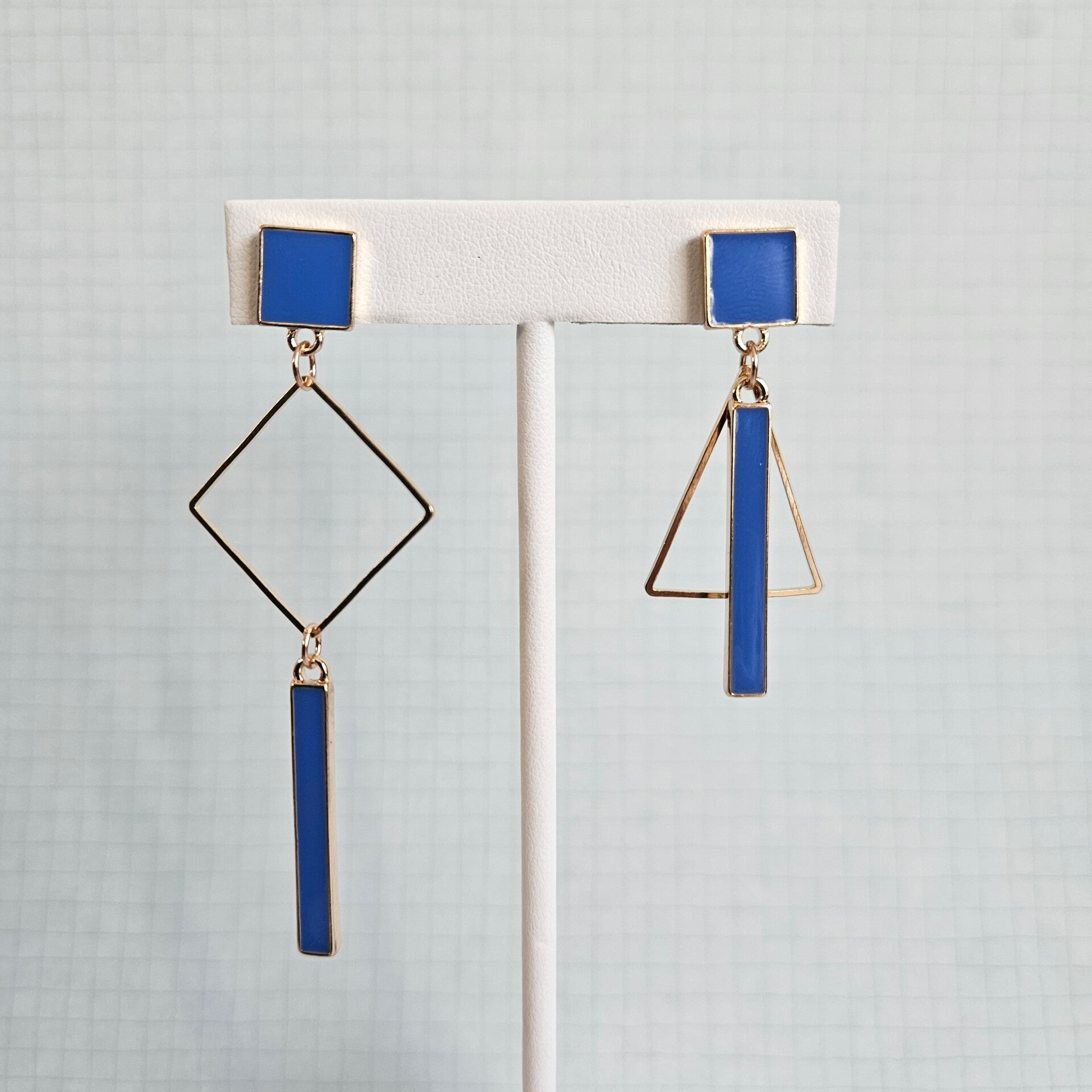 asymmetrische oorhangers met staafje, vierkante/driehoekige connector en vierkante stud - luxe-editie (goud, emaille)