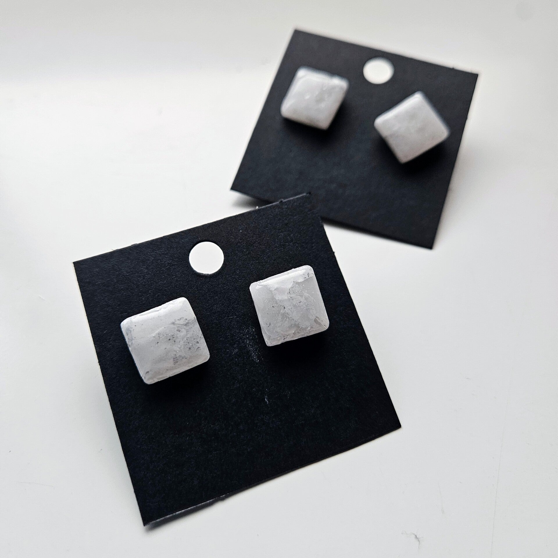 vierkante oorstuds L (PMK MALOJA-snow&silvermist) (zilverkleurige RVS oorstekers)