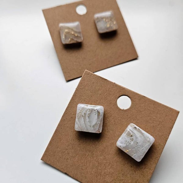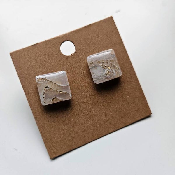 vierkante oorstuds L (PMK MALOJA-snow&sunbeam) (goudkleurige RVS oorstekers)