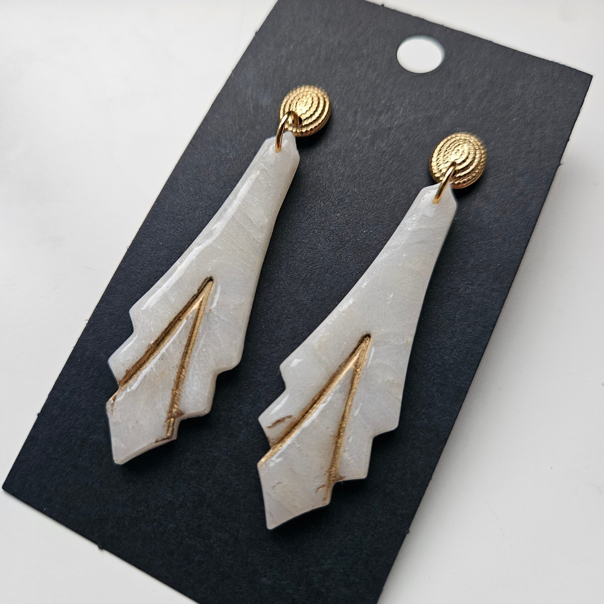 lange smalle oorhanges art nouveau goudkleurige nerven (PMK MALOJA-champagne sorbet) (goudkleurige RVS ovalen oorstekers)