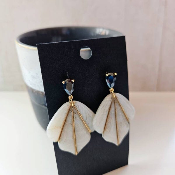 brede oorhangers art nouveau goudkleurige nerven (PMK MALOJA-champagne sorbet) (goudkleurige oorstekers met zwarte zirkoon)