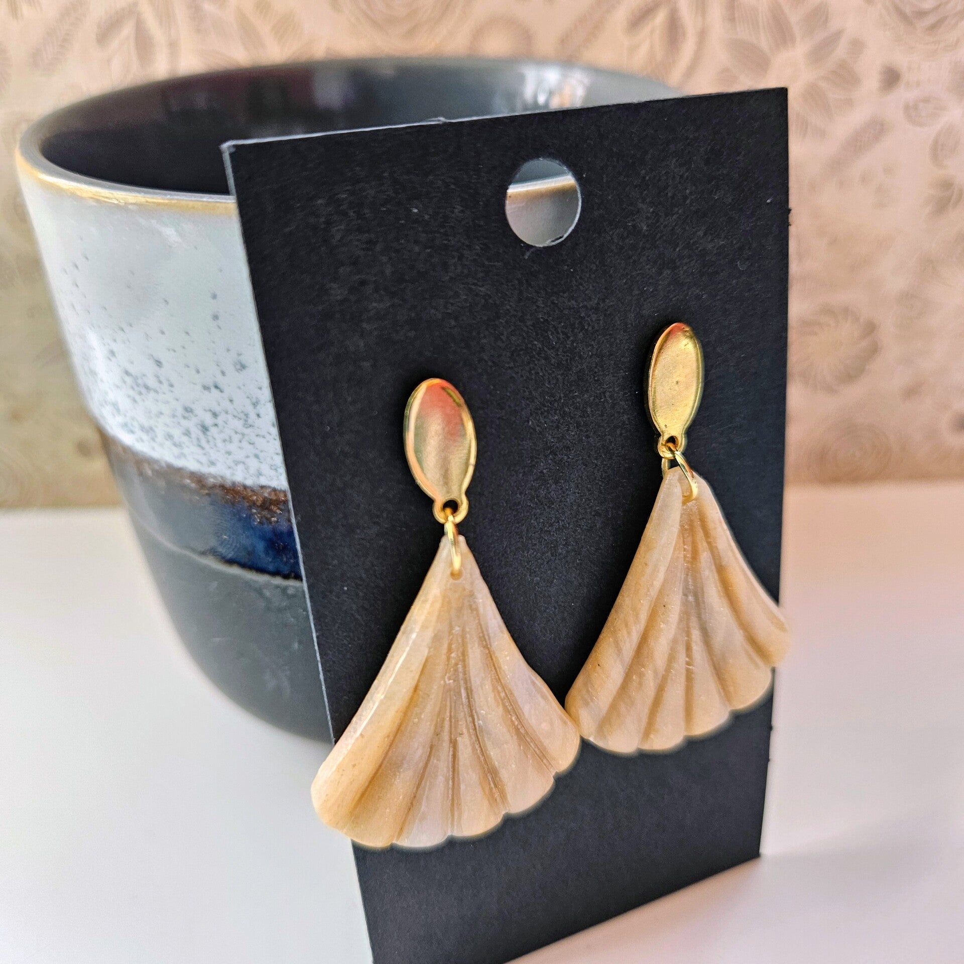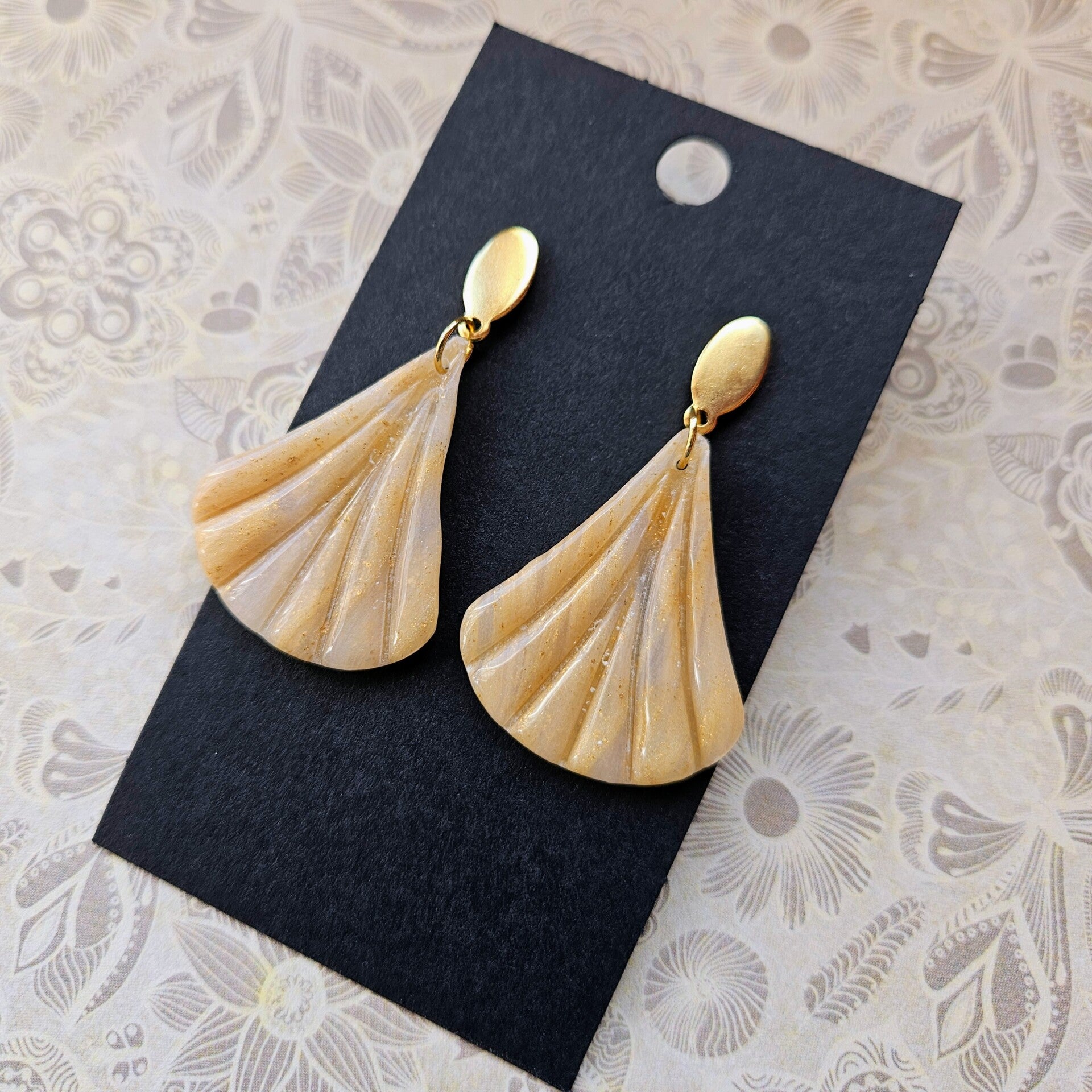 waaiervormige art nouveau oorhangers met ovalen RVS oorstekers (PMK-Luxor-2)
