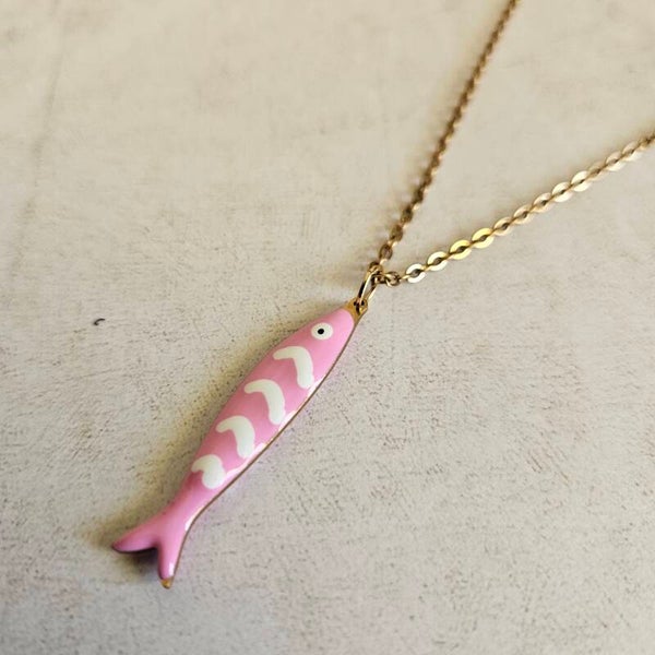 Mix&match emaillen bedel - L vis (sardientje met streepjes) RVS (goudkleurig) - per stuk