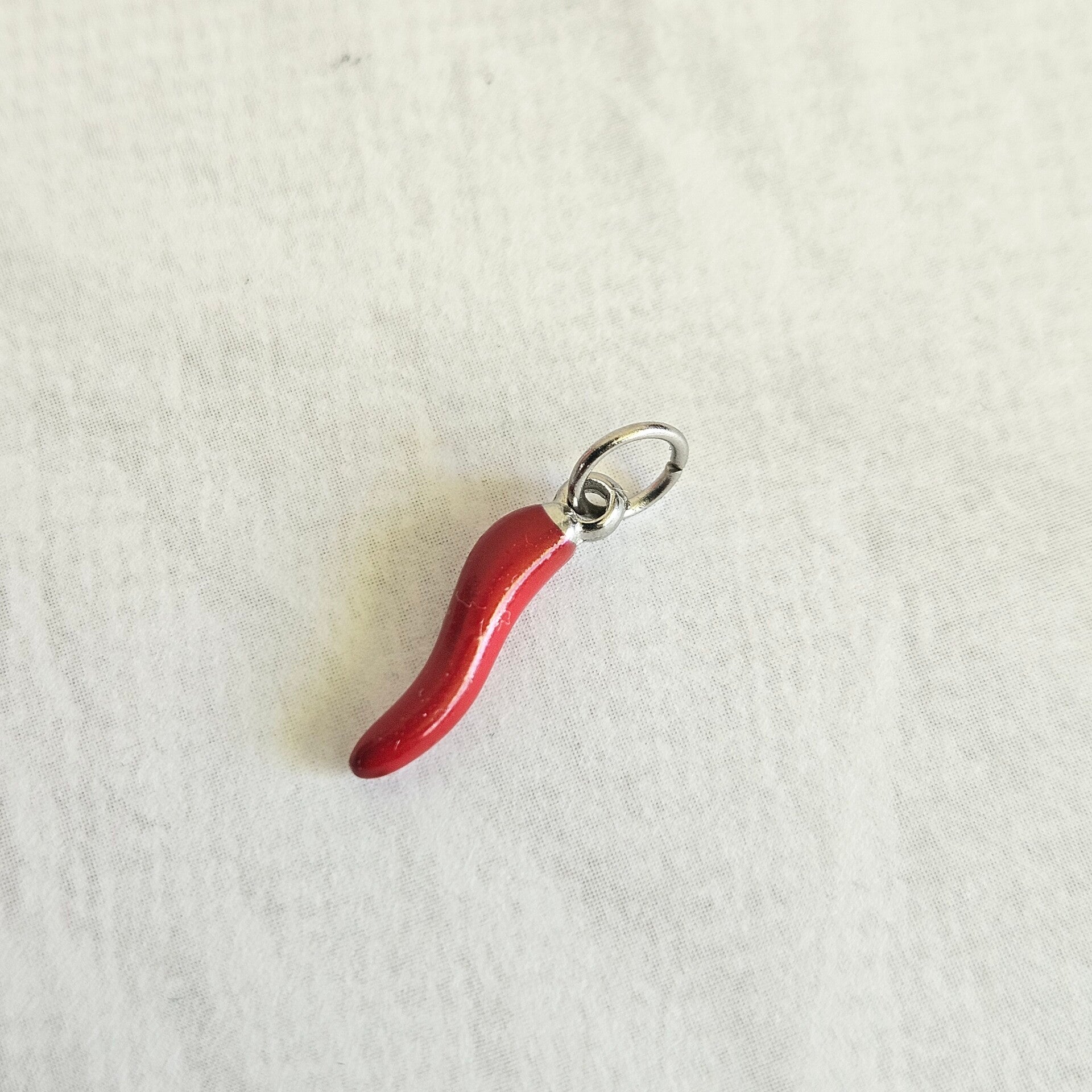 Mix&match emaillen bedel - rode peper S (zilverkleur) (RVS) - per stuk