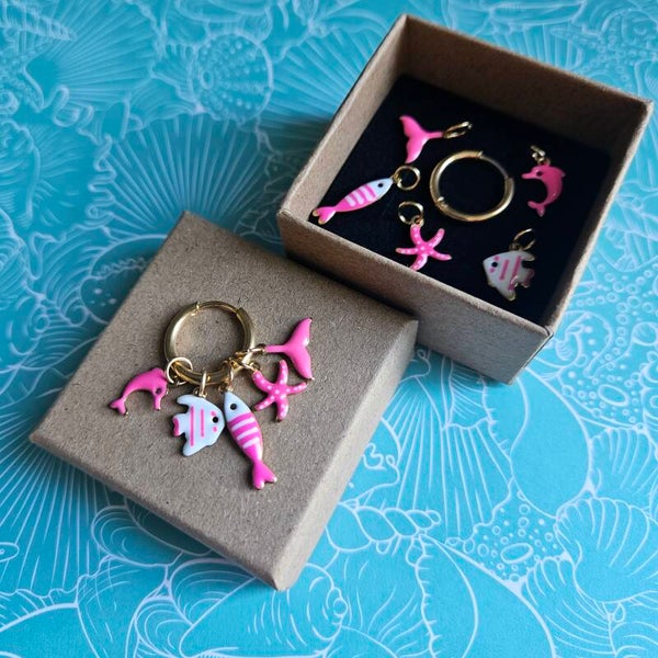 - + 1 paar emaillen bedeltjes roze dolfijn
